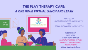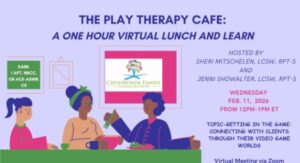 This virtual, one-hour lunch and learn session will be held monthly. Earn one Play Therapy CE while discussing various aspects of play therapy, including techniques, theories, and the process of becoming a Registered Play Therapist (RPT). This is also a great opportunity to network with fellow and aspiring play therapists. Register for this month’s session using the link below!